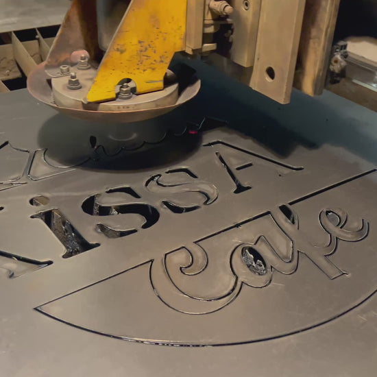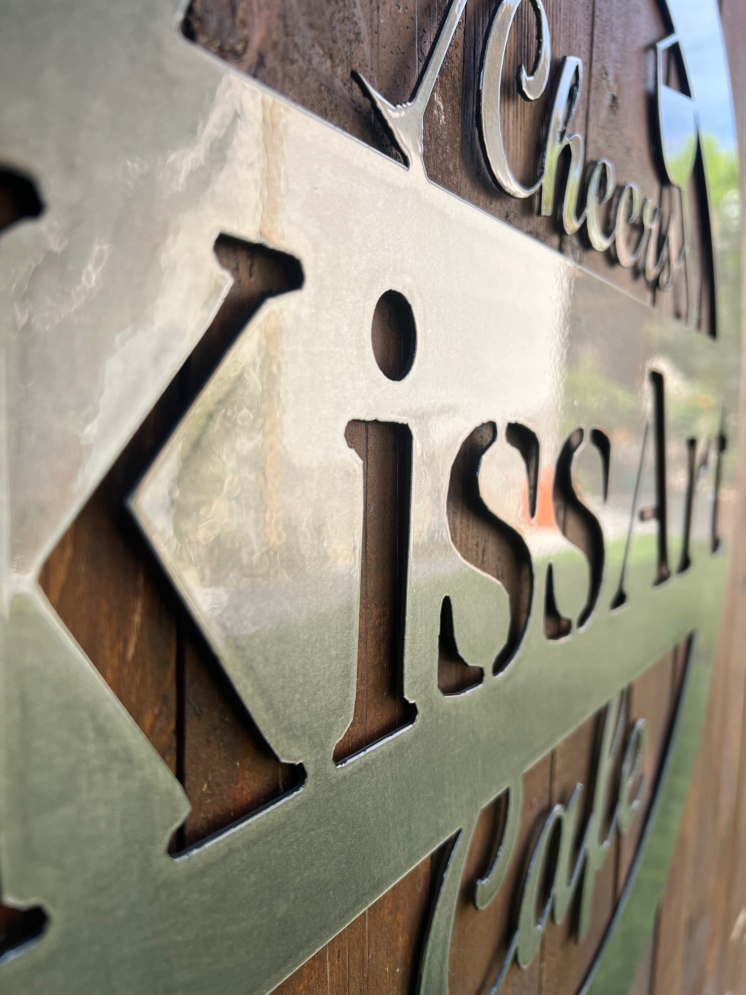 Indicator metalic durabil, ideal pentru cafenele, bucătării sau colțuri de cafea. Personalizabil cu text.